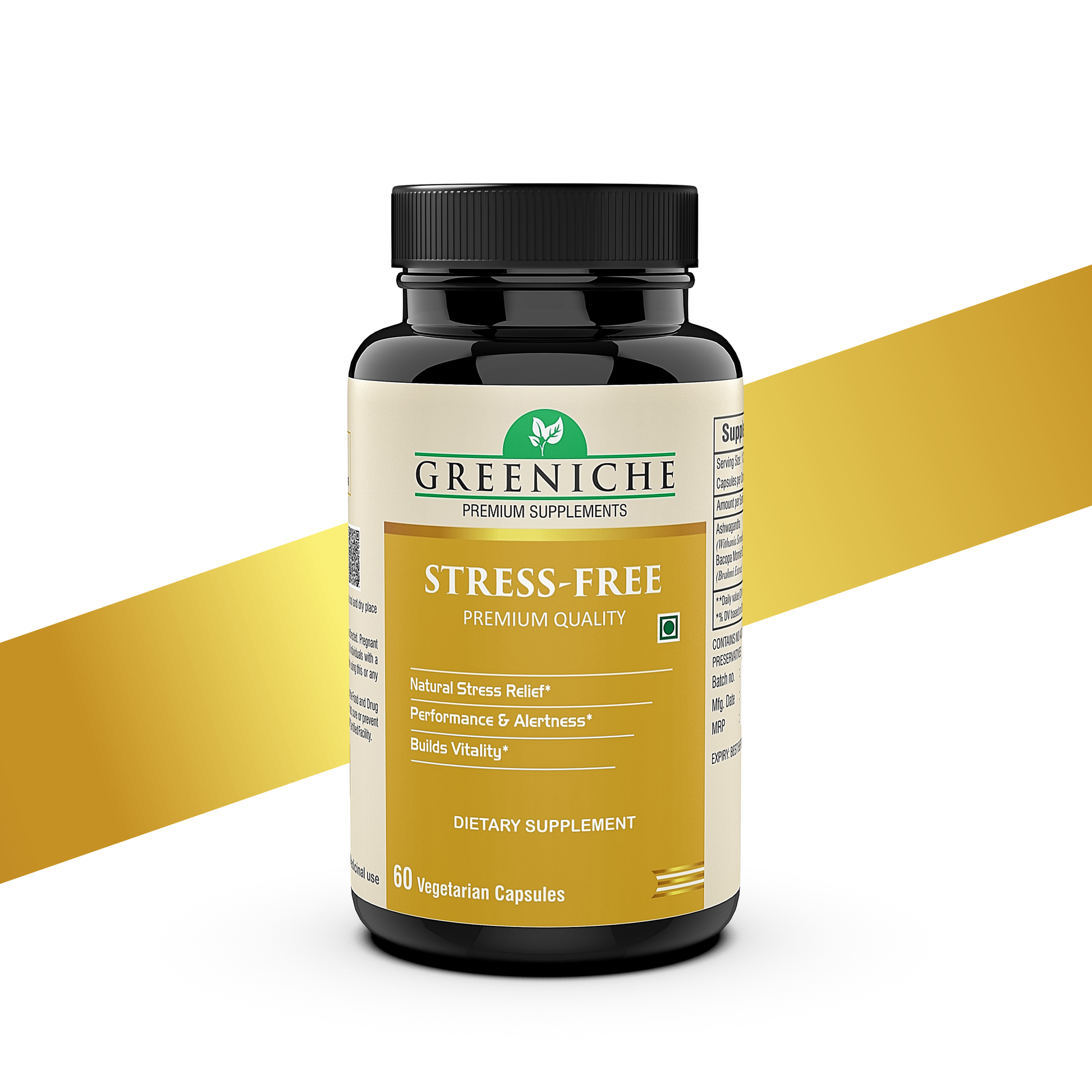 Greeniche Stress Free – Natural Stress Relief with Ashwagandha & Brahmi Extract | Supports Mental Calmness & Cognitive Function