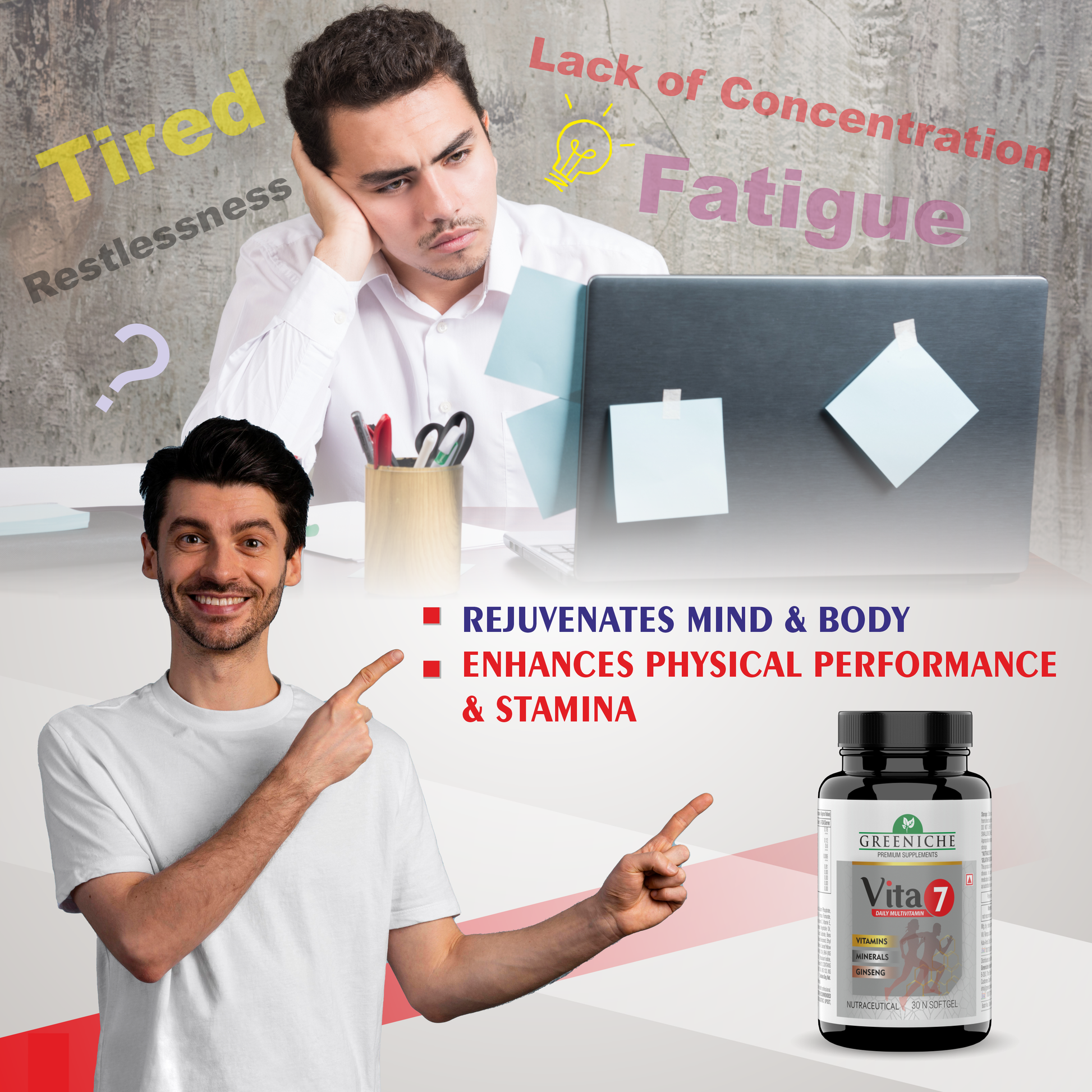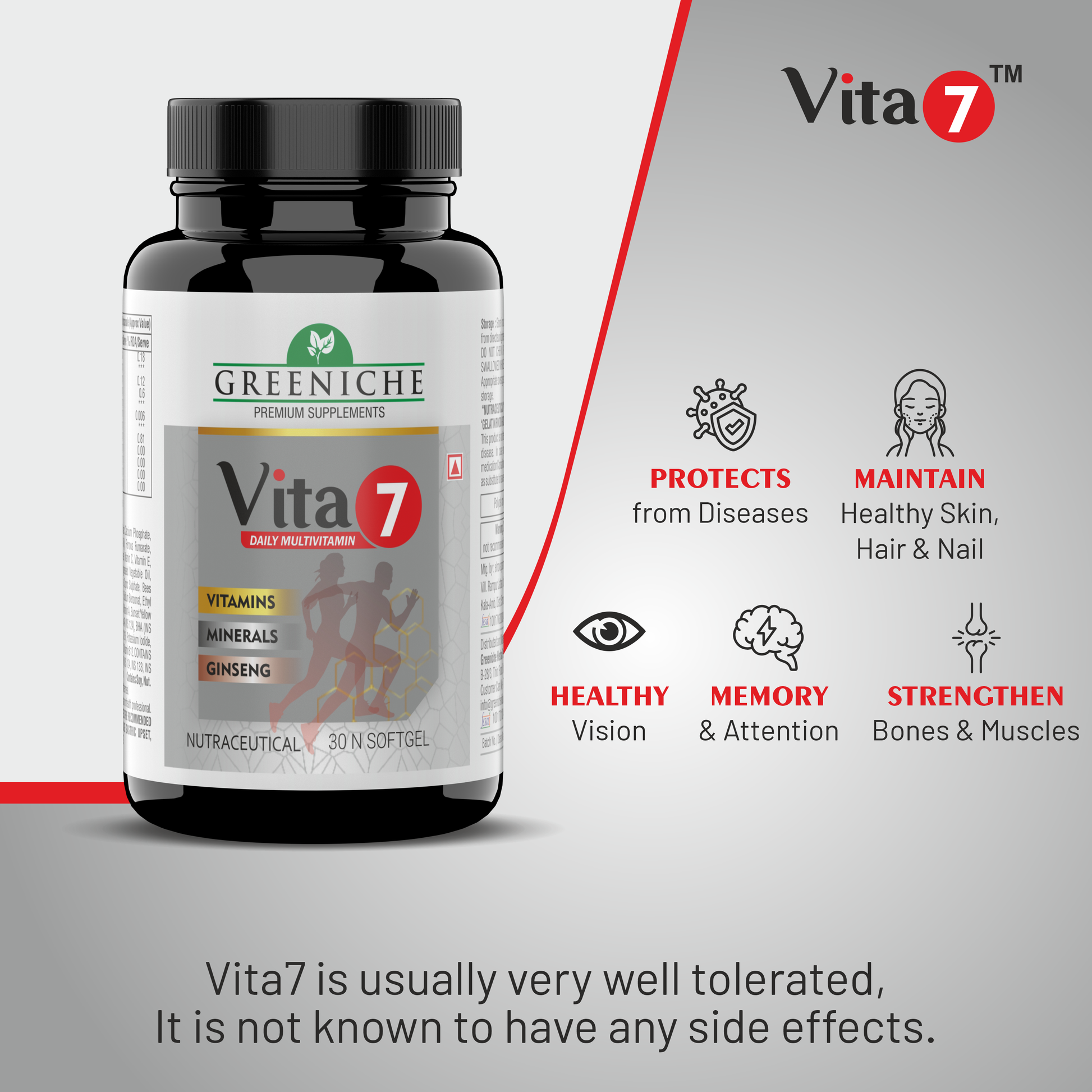 Greeniche Vita 7 Multivitamin with Ginseng for Daily Energy, Stamina & Immunity